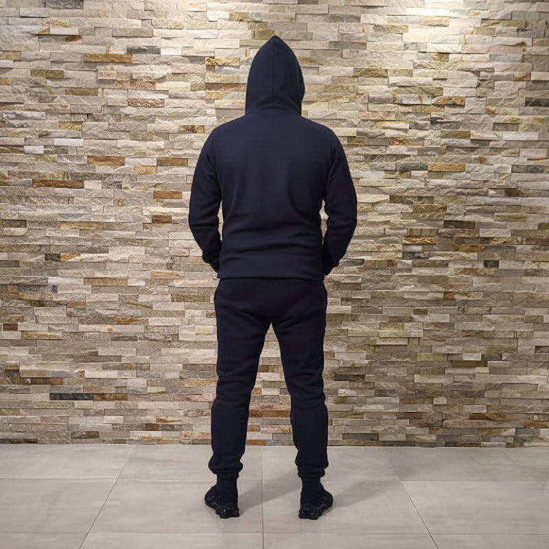 - Set complet coordonné : Pull à capuche + pantalon assorti bleu marine pour un look harmonieux