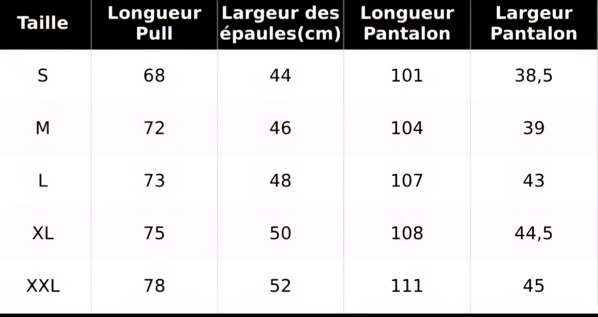 - Pantalon : Taille élastique avec cordon de serrage, logo brodé, intérieur molletonné