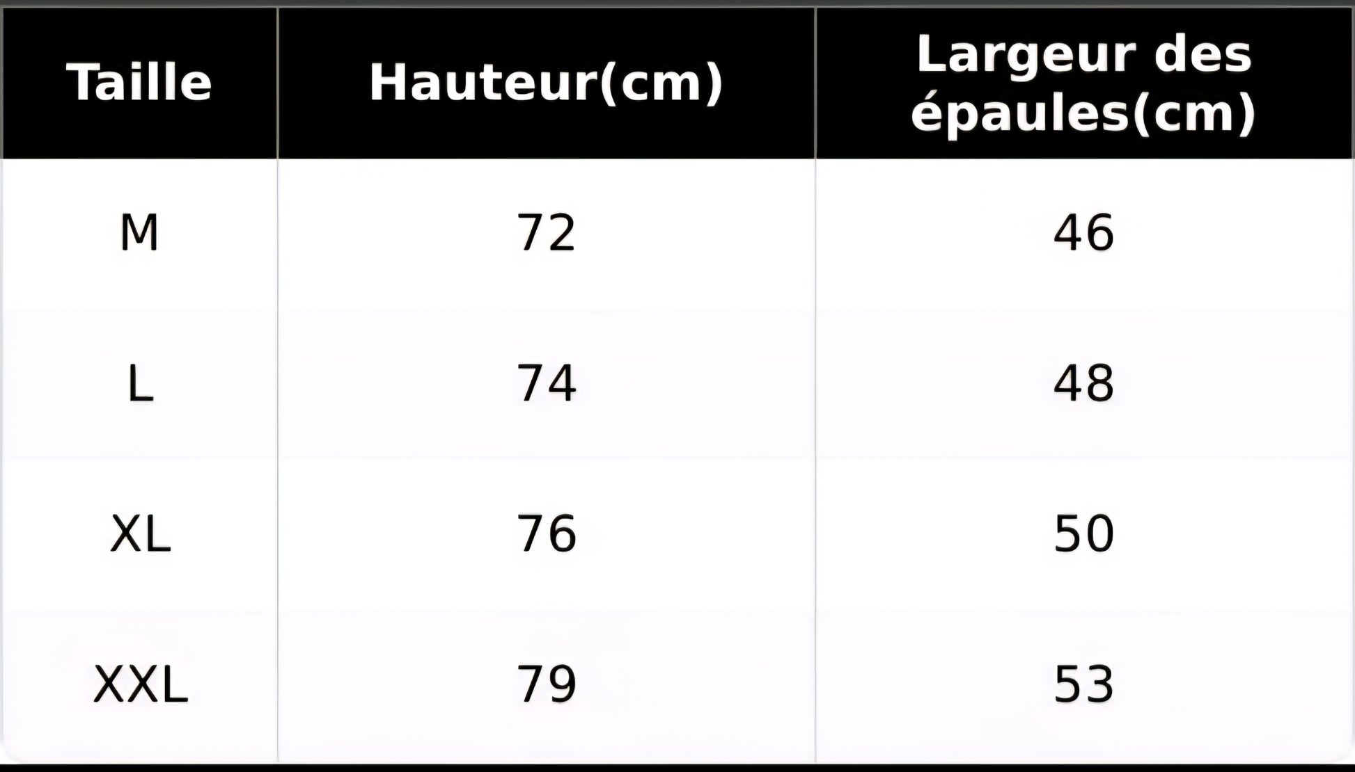 📐 Guide des tailles