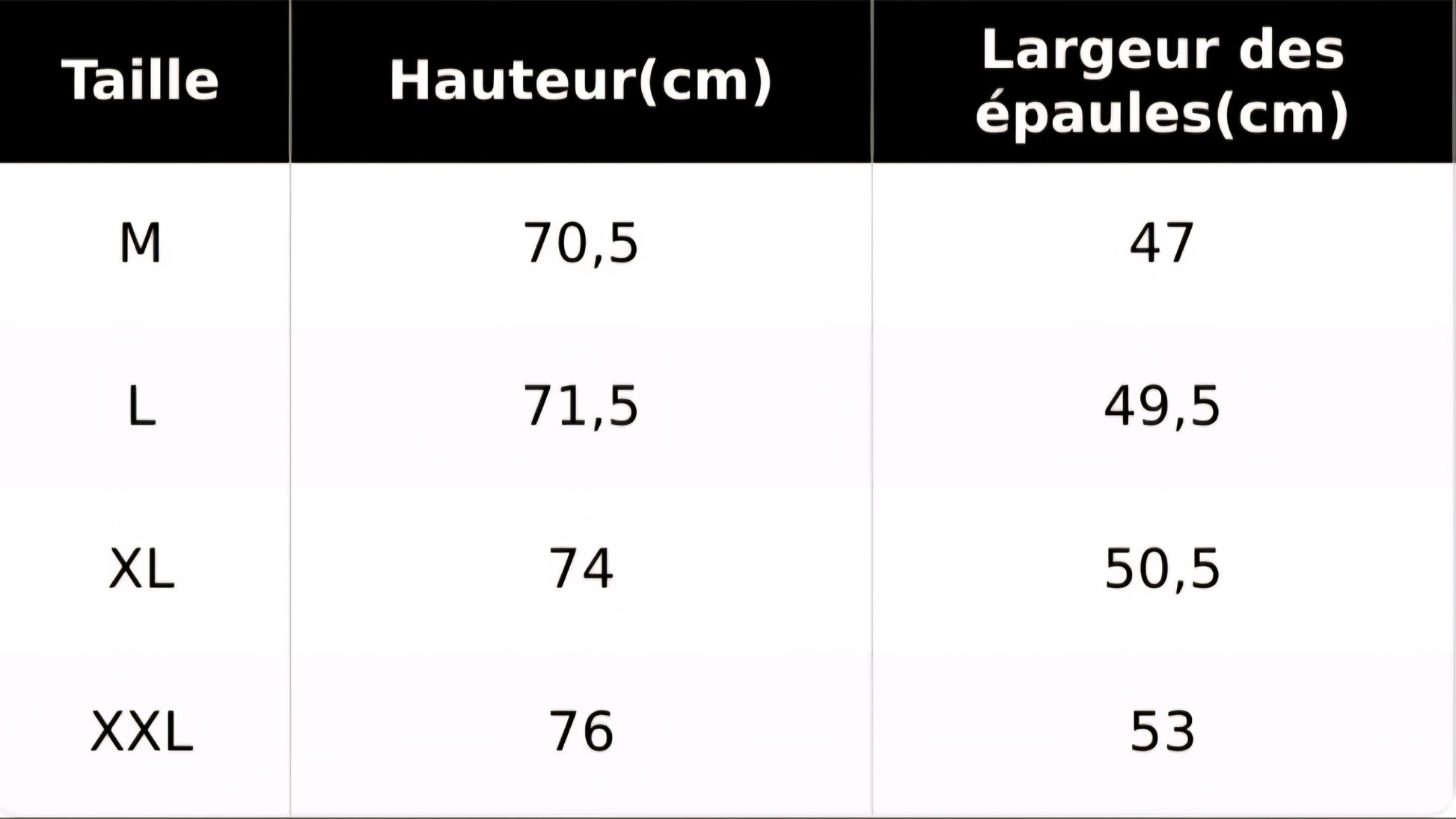 📐 Guide des tailles
